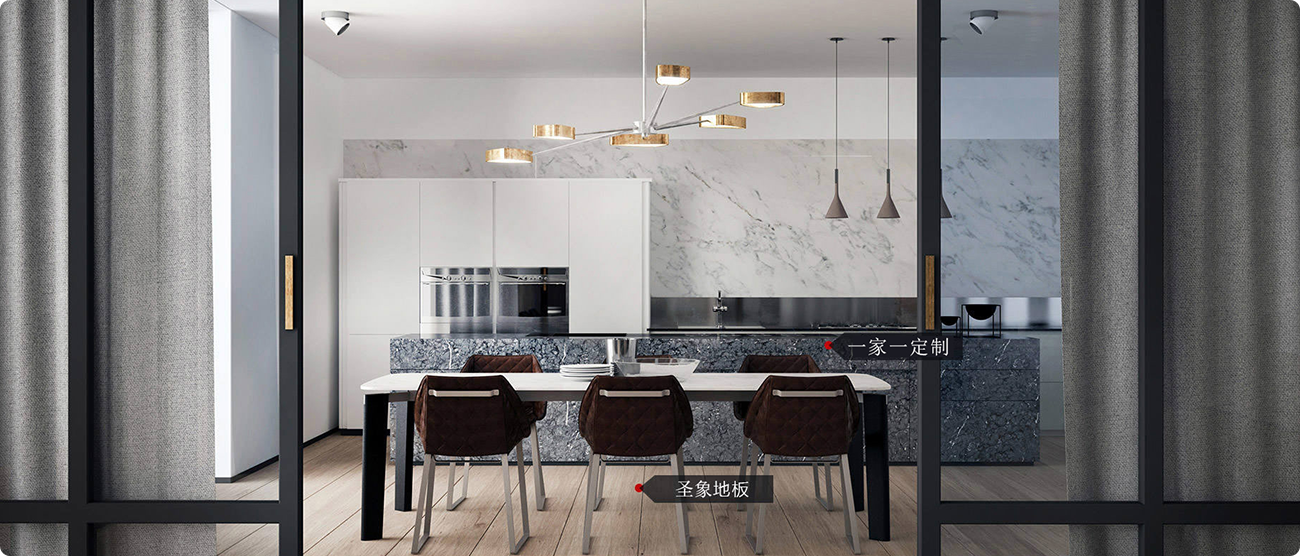 餐廳:墻面&頂面乳膠漆、強電改造、開關面板、木地板/大地磚、踢腳線、餐桌、餐椅(4把)、餐燈、布藝窗簾、成品安裝。
